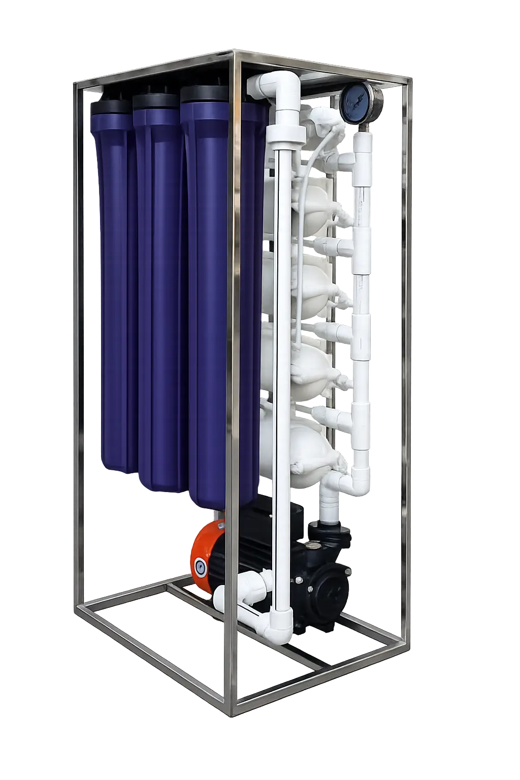 This high-performance RO system comes equipped with a powerful CRI 1HP commercial-grade motor and 4 high-quality 300 GPD membranes, ensuring consistent water output of up to 200 liters per hour with excellent purification efficiency.